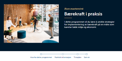 Lyst til å lære mer om bærekraft? ta kurset BI Master of Management Executive program kurset Bærekraft i Praksis